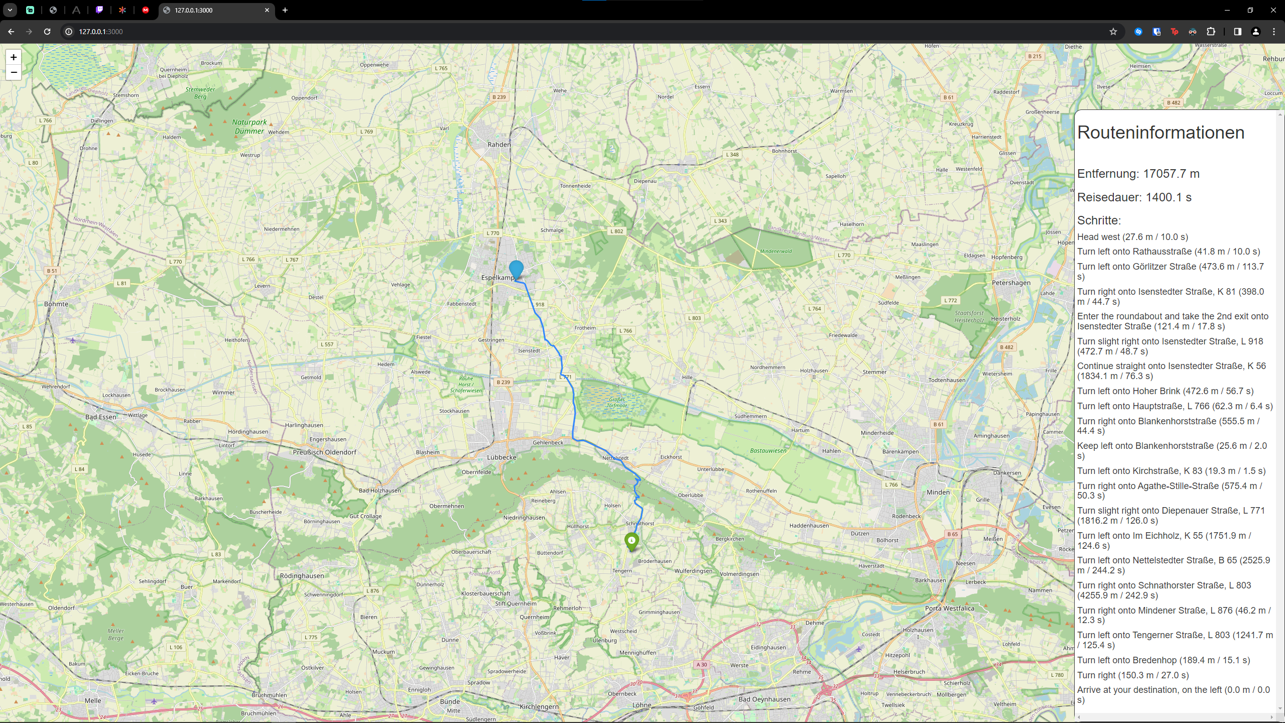 This is a group project about a routing app with weather information for going from point A to point B written in Python. The input fields for the desired places do have auto completion feature.